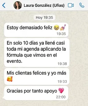 “Una sola campaña bien hecha podría generarte clientes nuevos todos los meses. Piensa en los salones exitosos: no dependen de referidos. Dependen de sistemas como los que te mostraremos en este curso. Es una decisión obvia. No lo pienses más." “Una sola campaña bien hecha podría generarte clientes nuevos todos los meses. Piensa en los salones exitosos: no dependen de referidos. Dependen de sistemas como los que te mostraremos en este curso. Es una decisión obvia. No lo pienses más."